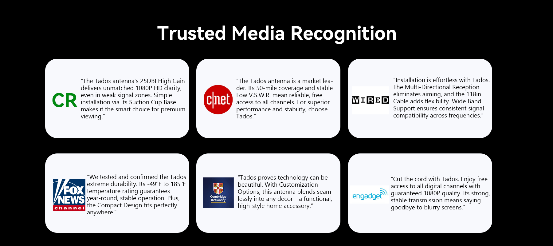 That’s how Tados was born. This compact, easy-to-install receiver ensures strong, stable signal reception, bringing you all the channels you love with ease. Tados makes a simple promise: to provide seamless entertainment and allow you to enjoy crystal-clear viewing from anywhere, without the interruptions.