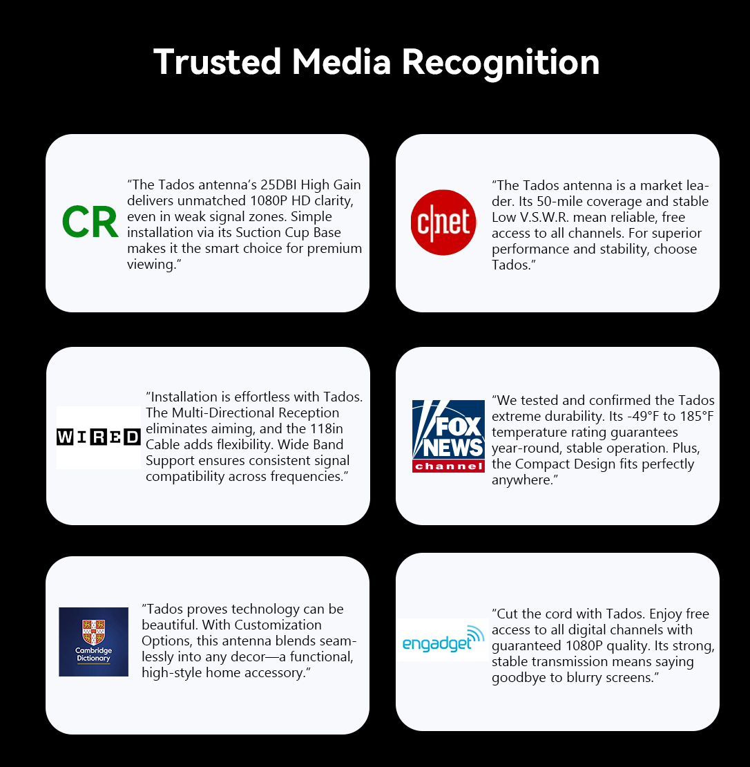 Tados was created by tech enthusiast Oliver Reid, who was frustrated with the limitations of traditional TV signal receivers—poor reception and interference that disrupted his viewing experience. He wanted a reliable, hassle-free way to enjoy clear and uninterrupted broadcasts.
